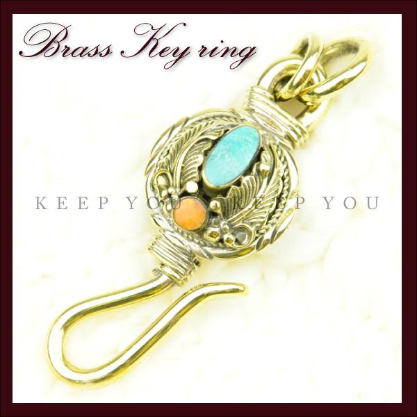 メール便 送料無料 真鍮 キーホルダー インディアン ジュエリー ターコイズ【キーリング/キーフック/ウォレットチェーン】KRB-153-1B ┃