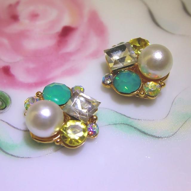 クレア Crea ★マーメイドラグジュ(グリーンオパール) キラキラ若草色ビジューの夏ネイルパーツ♪
