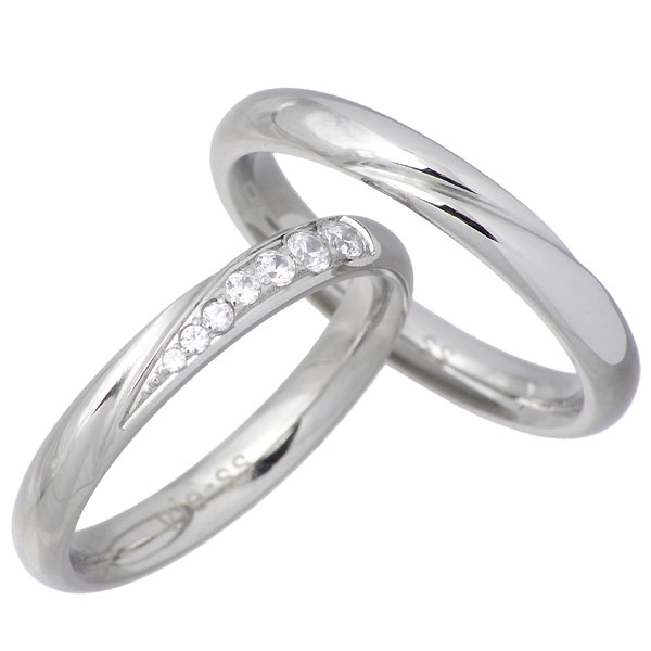 シンプルな平打ちタイプのリングにエレガントなデザインを施したペアーリング。