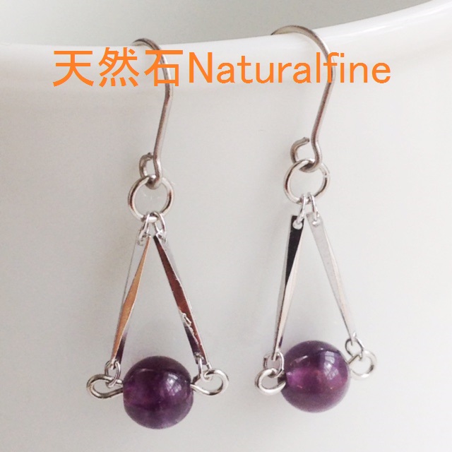 こちらは、アメジストをスティクで挟んだミニバランスのピアス(イヤリング)です。