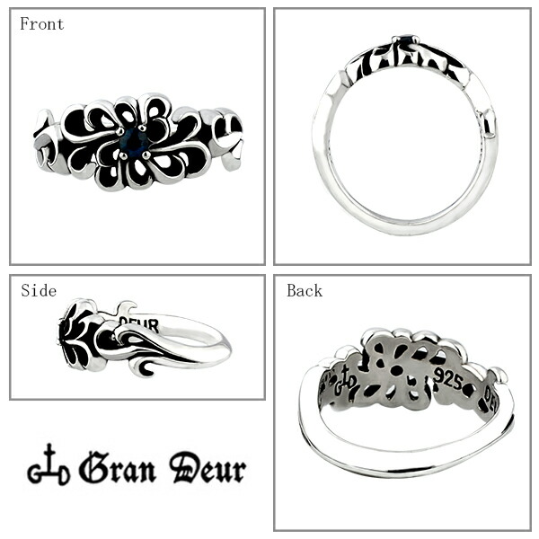 GRAN DEUR サファイアフラワー シルバーリング 7〜19号 シルバーアクセサリー メンズ リング サファイア 男性用指輪 グランデューワー メンズリング