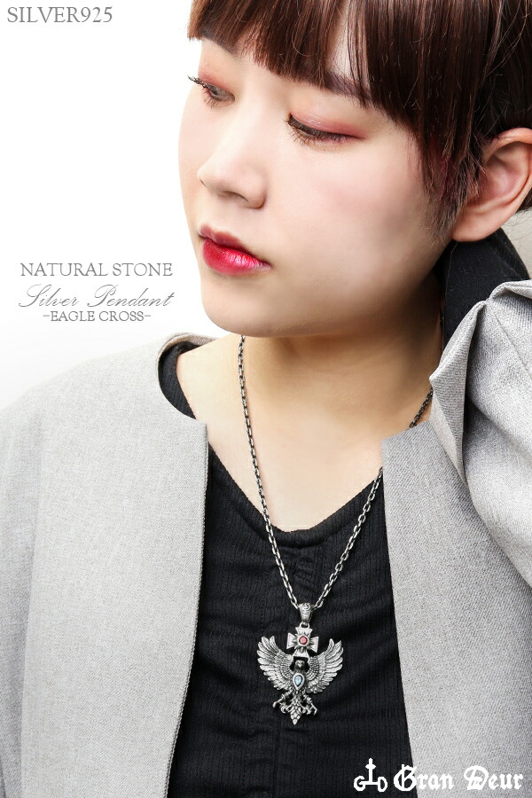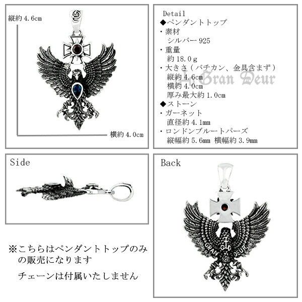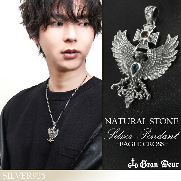 イーグル クロス シルバーペンダントトップ チェーンなし ヘッド トップ シルバーアクセサリー メンズペンダントトップ ガーネット ブルートパーズ