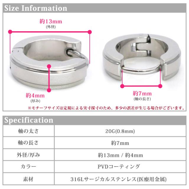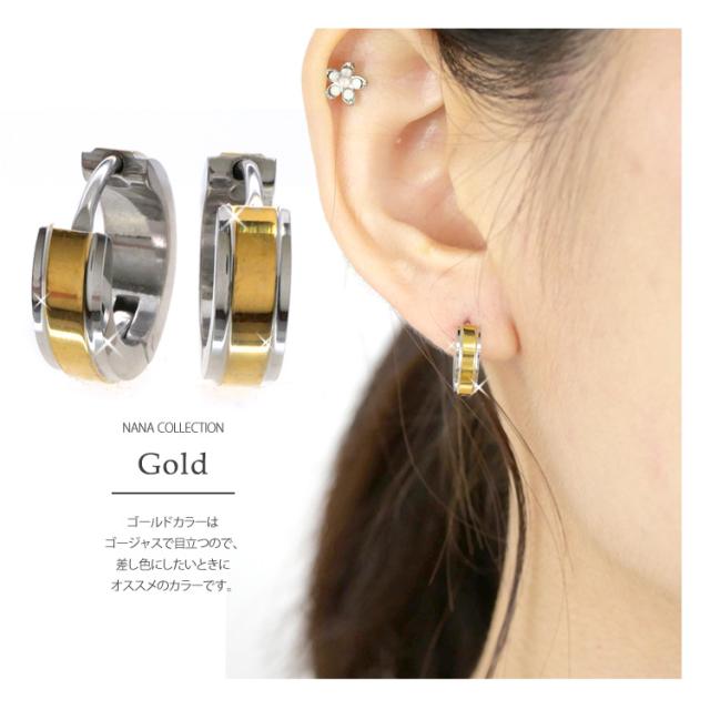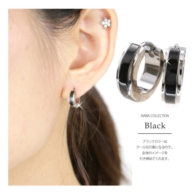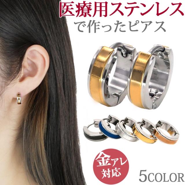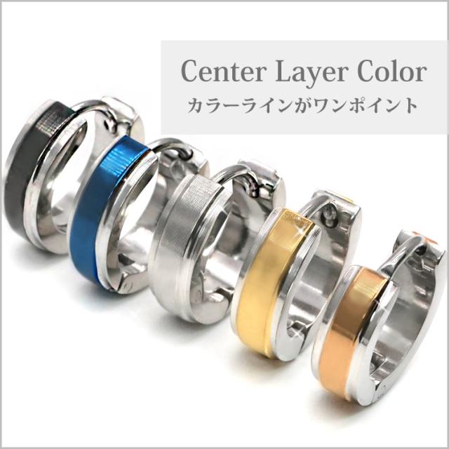 金属アレルギー対応 ステンレスピアス センターレイヤーカラーピアス(両耳用)フープピアス 316L
