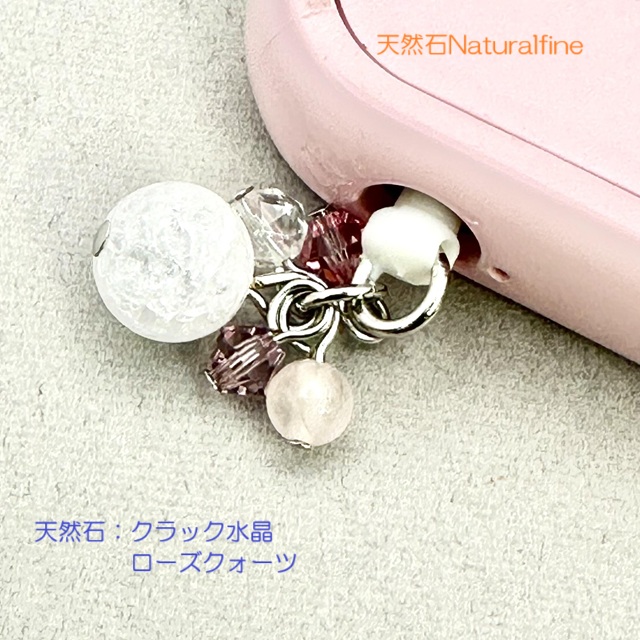イヤホンジャック iPhone android 天然石 水晶 パワーストーン 開運 クラック水晶 スマホピアス 願いが叶う ストラップ