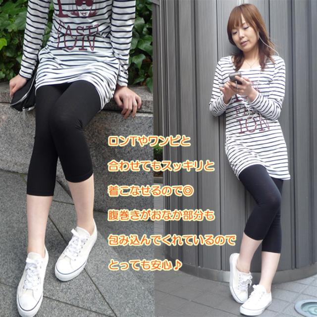 ヘビロテ間違いなし☆お腹あったか腹巻きレギンス7分丈です。二重仕立てのやわらかウエストでおなかをあたたかく包み込みます。