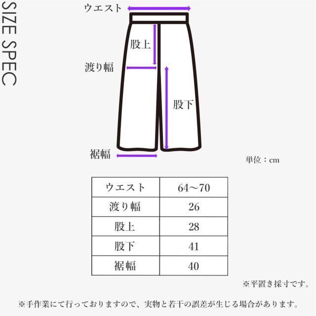 ウエスト64〜77cm ヒップ85〜98cm わたり幅27cm 股上33cm 股下37cm 裾幅39cm