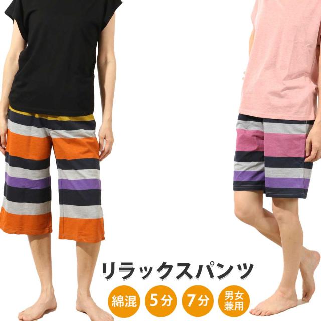 ハーフパンツ コットンサブリナパンツ ドット柄 ボーダー柄 チェック柄 カプリ丈 レディース メンズ スウェットパンツ 7分丈 お家でヨガ