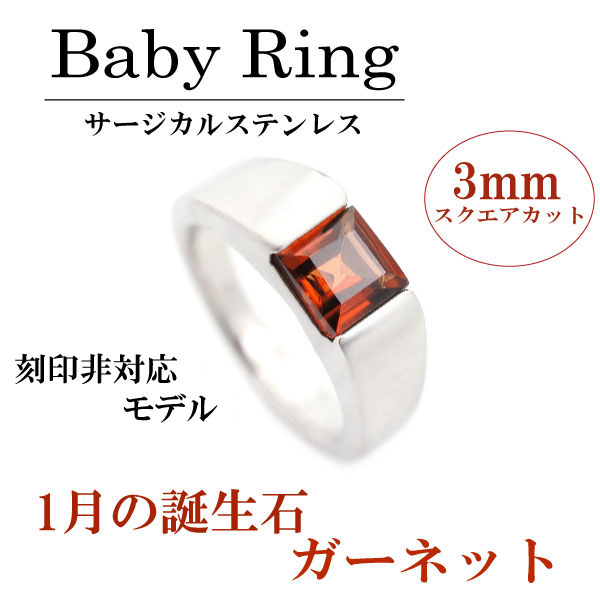 ベビーリング 誕生石 ガーネット 送料無料 刻印非対応 ステンレス 1月 スクエアモデル サージカルステンレス