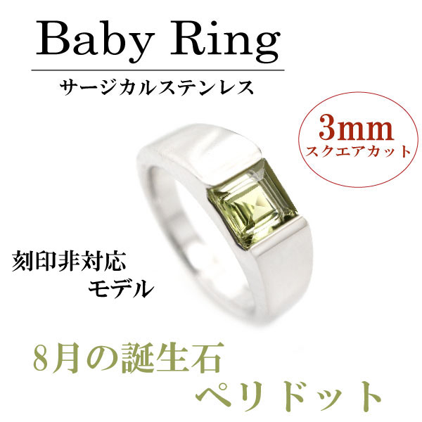 ベビーリング 送料無料 刻印非対応 ステンレス 8月ペリドット スクエアモデル サージカルステンレス