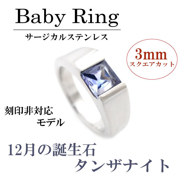 ベビーリング 送料無料 刻印非対応 ステンレス 12月タンザナイト スクエアモデル サージカルステンレス