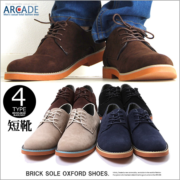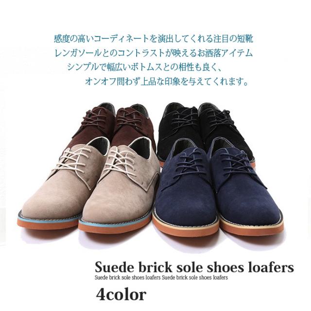 送料無料!好感度の高い大人コーデを演出★PUスエード カラーソール 短靴 メンズ オックスフォードシューズ