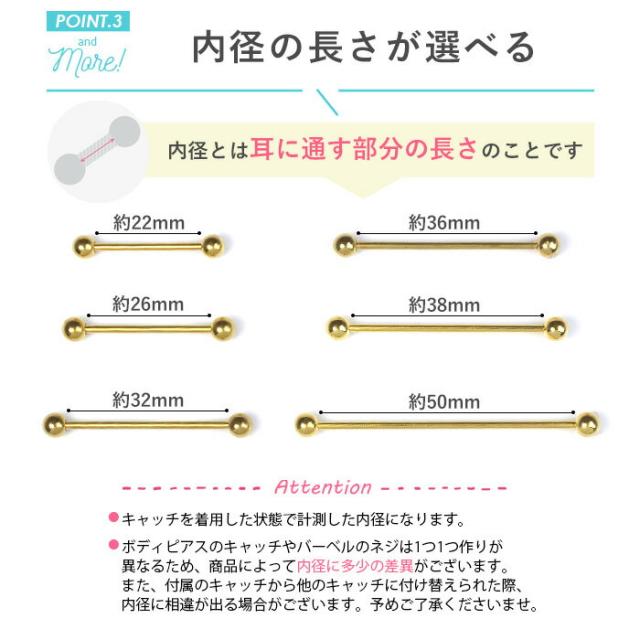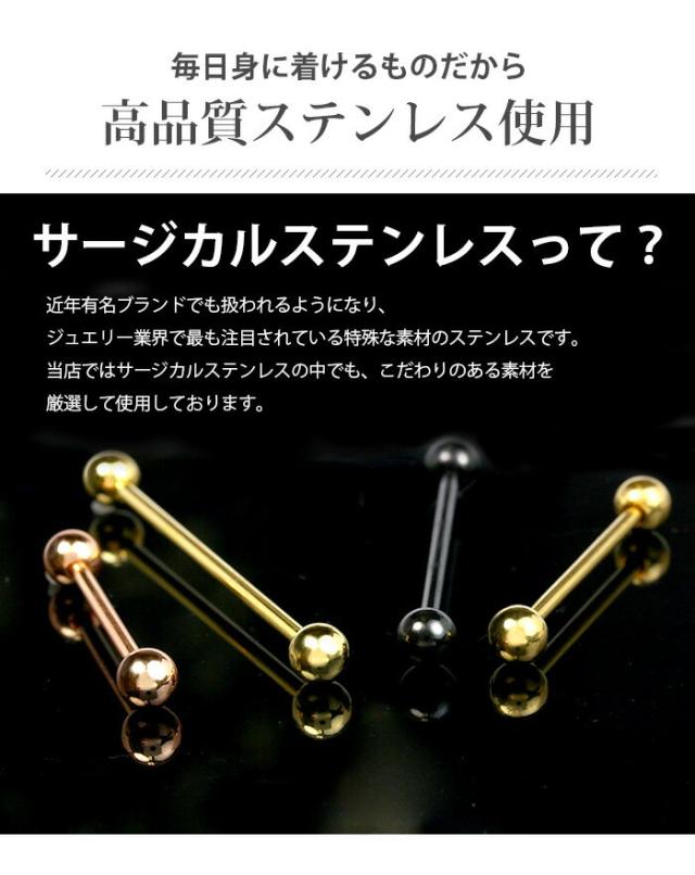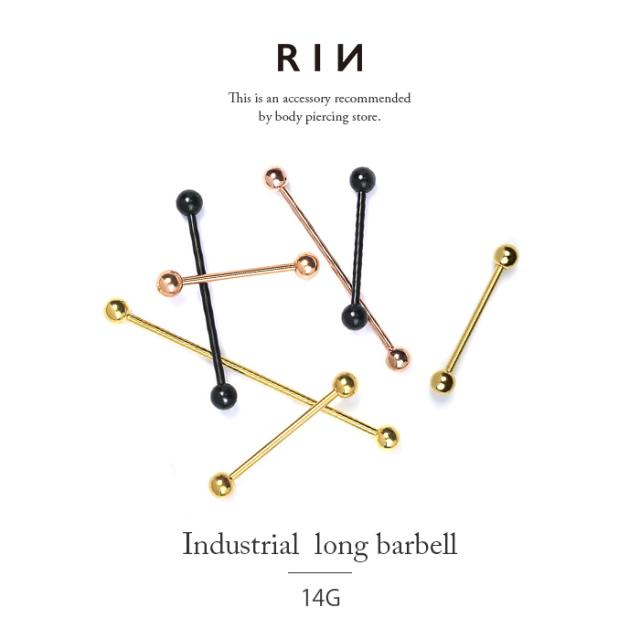 ボディピアス インダストリアル 14G ロング ストレート バーベル 軟骨ピアス サージカルステンレス ゴールド ピンクゴールド ブラック シンプル ボディーピアス 通販 凛