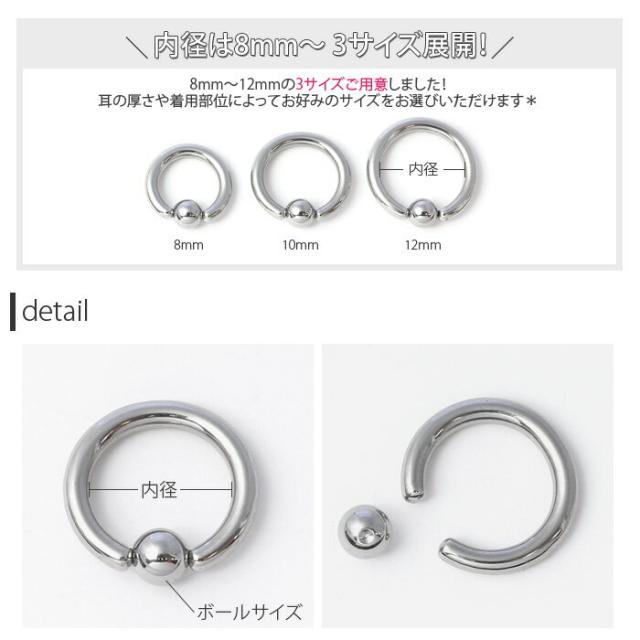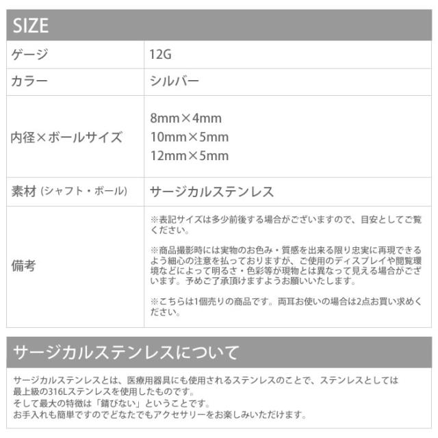 ボディピアス 12G キャプティブビーズリング 軟骨ピアス シルバー サージカルステンレス 金属 アレルギー 対応