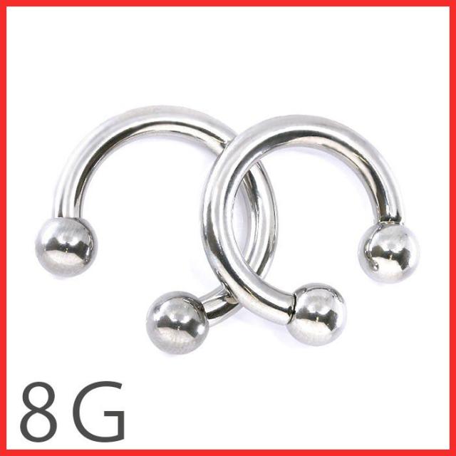 ボディピアス 8G 軟骨ピアス サーキュラーバーベル サージカルステンレス 片耳用 金属 アレルギー 対応 ラージゲージ 8ゲージ シルバー