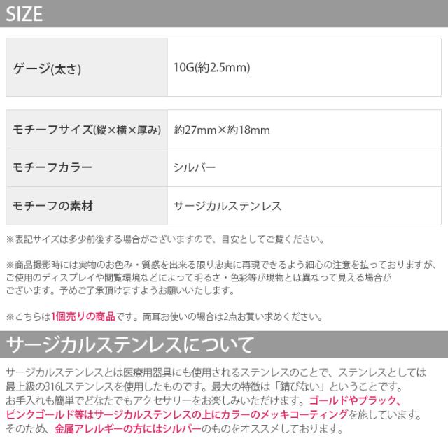 ボディピアス 10G 軟骨 ピアス トライバル 個性的 シルバー スタイリッシュ サージカルステンレス 金属 アレルギー 通販 ラージゲージ