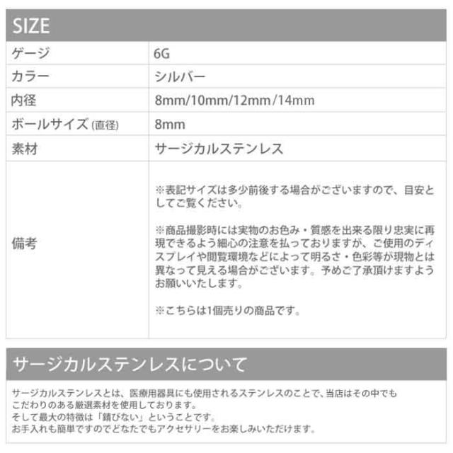 ボディピアス 6G 軟骨ピアス スタンダード シンプル ラージゲージ ストレートバーベル 金属 アレルギー 対応 サージカルステンレス 片耳用 セカンドピアス