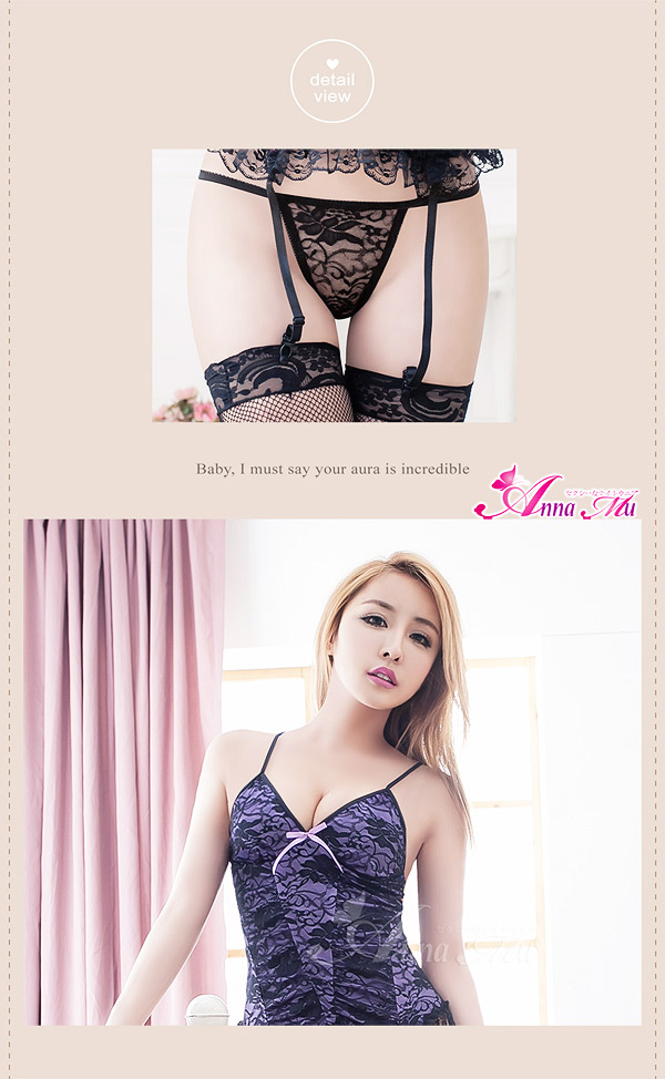 キャミソール Tバック(後ろ割れ) ガーターベルト4本 ニーハイ網タイツ