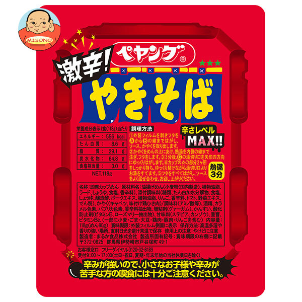 ペヤング 激辛やきそば 118g×18個入| 送料無料 焼そば インスタント食品 カップ焼そば