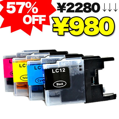 互換インクカートリッジ ブラザー LC12BK/LC12C/LC12M/LC12Y用 4色セット BICB12SET【メール便送料無料】