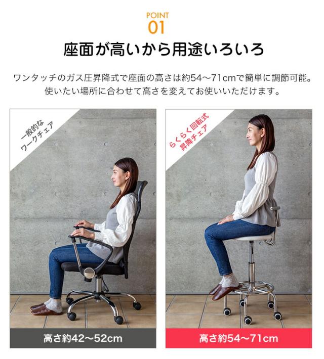 座面の高さが調節できる昇降式キッチンチェア。