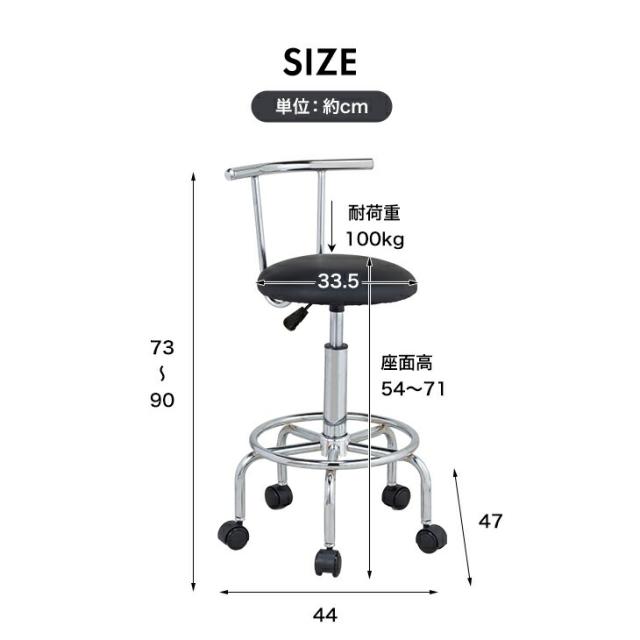 ●サイズ/約幅44×奥行47×高さ73〜90cm、座面サイズ:約直径33.5cm、座面高さ:約54〜71cm