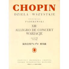 <楽譜>【YMM】パデレフスキ編 ショパン全集 XIII 演奏会用アレグロ 変奏曲