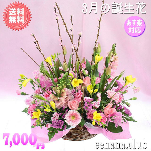 3月の季節の新鮮なお花を入れて真心込めて贈ります