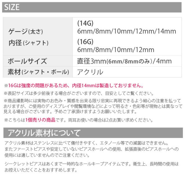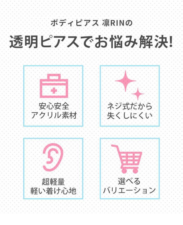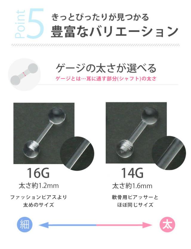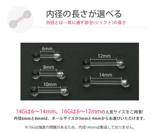 14G 16G 透明ピアス 透ピ リテーナー アクリル シークレットピアス 軟骨ピアス 定番 ボディピアス バーベル セカンドピアス りん 凛「BP」「TOM」「SA」「PS」 r2f-114-147