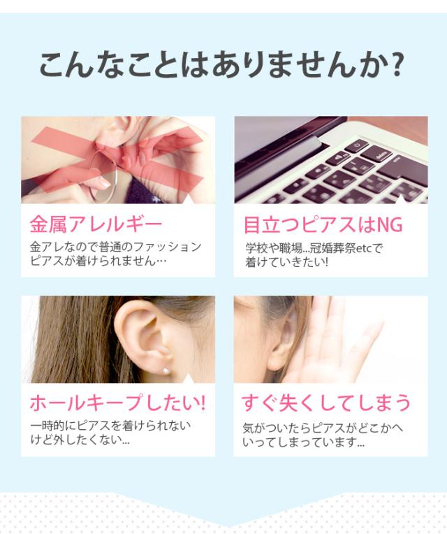 - 目立つピアスは仕事中はつけられないけどピアスホールは維持したいと言う理由で、この商品を知る前は他の樹脂ピアス?を利用していましたが、留め金部分が無くなる、差し込む先が毛羽立っていてピアスホールを傷つけ...