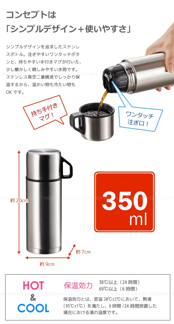 [保温効力/保冷効力] 38℃以上(24時間) 69℃以上(6時間)/ 10℃以下(6時間)
