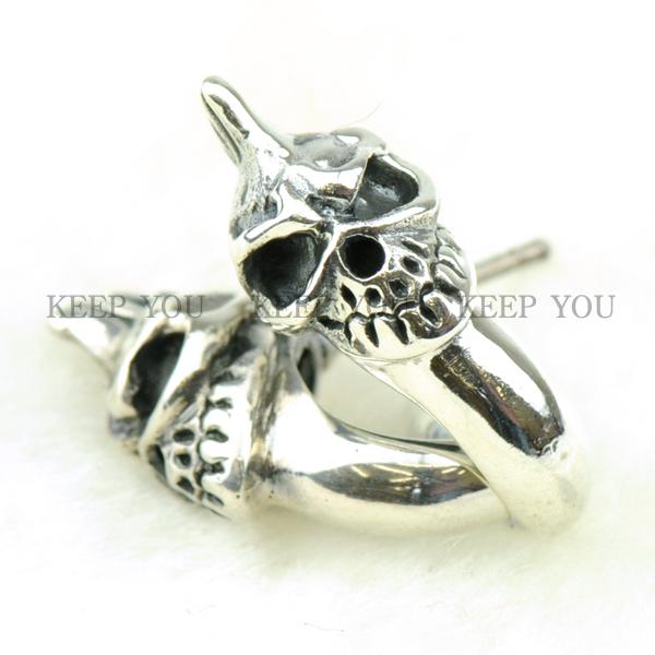 メール便 送料無料 シルバー925ピアス スカル 骸骨【シルバーアクセサリー SILVER925 スターリングシルバー】si-00064 ┃