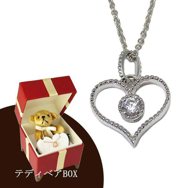 ★送料無料★【クマのギフトBOX付き】 ジルコニア オープンハート シルバーネックレス /レディース 女性 プレゼント くま