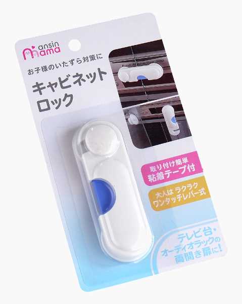 キャビネットロック 安心ママ 両面テープ付 (100円ショップ 100円均一 100均一 100均)