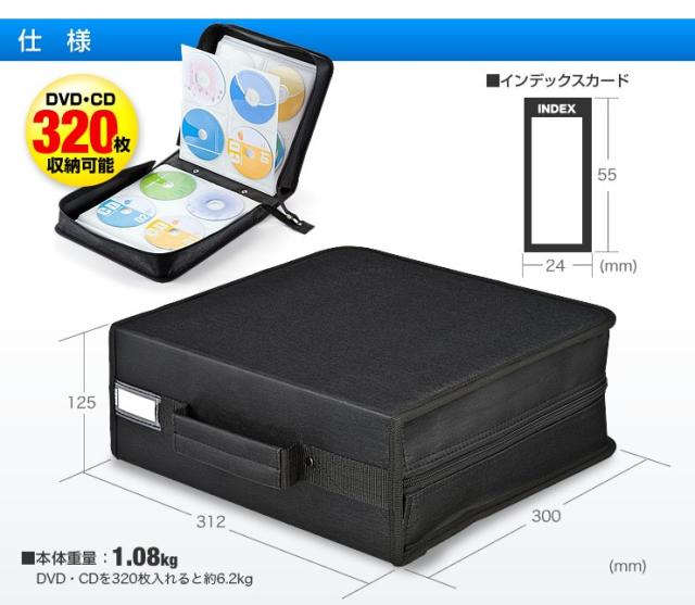 ●合計320枚のCD・DVDを収納できるファイル型ケースです。●プラケースを使うよりも省スペースに保管できます。