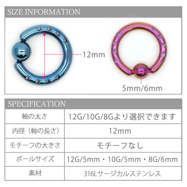 ピアス軟骨ピアス ボディピアス カラースポットビーズリング 12G 10G 8G