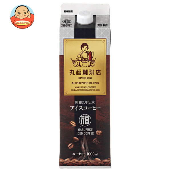 丸福珈琲店 昭和九年伝承 アイスコーヒー 無糖 1000ml紙パック×6本入| 送料無料 珈琲 アイスコーヒー 無糖 ブラック 紙パック 1L 1l