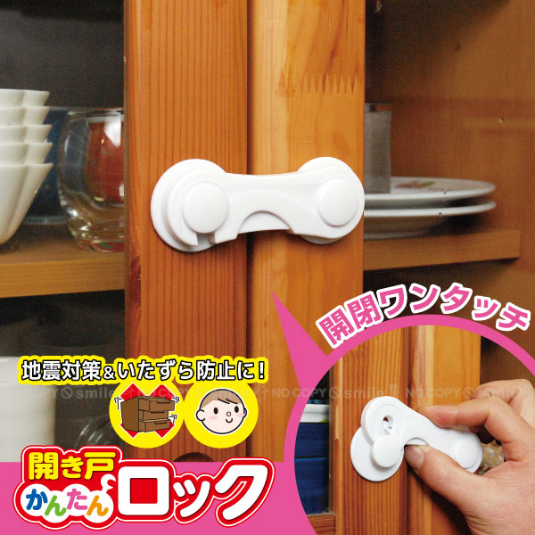 テレビ台や食器棚などの両開き戸に取り付け、地震の揺れによる開閉防止、お子様のいたずらによる開閉やけが防止に最適です。 両面テープではるだけの簡単取り付け! はがすときもキレイにはがせます。