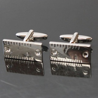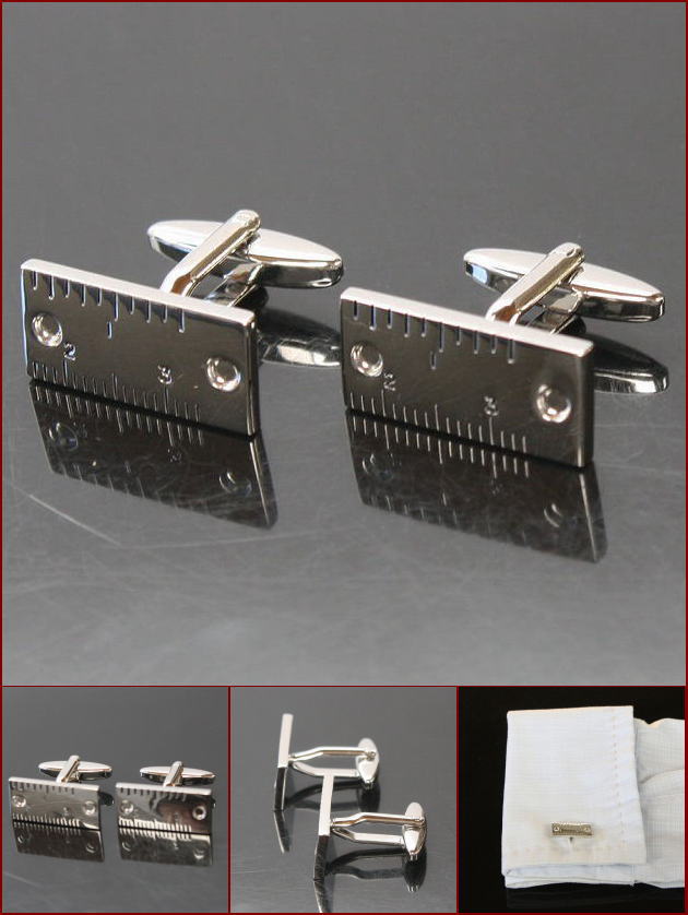 定規をデザインしたカフスボタン。