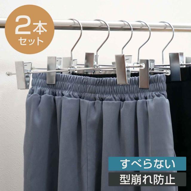 スカートやボトムスなどをしっかり掛けることができる、スカートハンガー2本セットです。