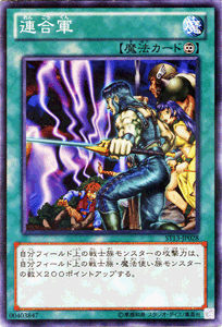 ■自分フィールド上の戦士族モンスターの攻撃力は、自分フィールド上の戦士族・魔法使い族モンスターの数×200ポイントアップする。
