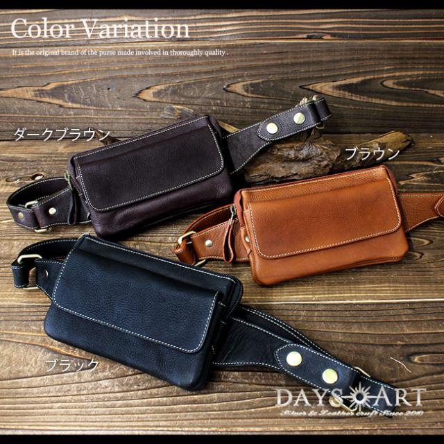 キメが細かくとても柔らかくて肌触りのいい上質のカーフスキン(子牛の革)を使用し、革職人がハンドメイドで製作しています。ちょっとした小物をスマートに持ち運べて、ウエストバッグとしてもショルダーバッグとしても使用可能です。本革ですので使い込むほどに革がなじみ、風合いが増していきます。