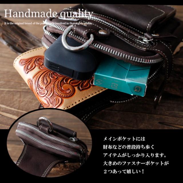 牛革 長財布入れ レザーバッグ レザーヒップバッグ ウエストバッグ 本革 メンズ バイカー かばん 鞄 ウォレットホルダー 【ギフト】 lb011