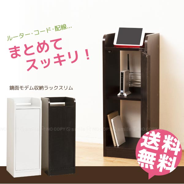 鏡面モデム収納ラック スリム【直】【送料無料】[KRO]