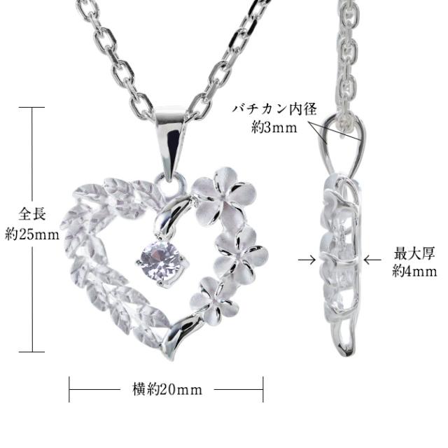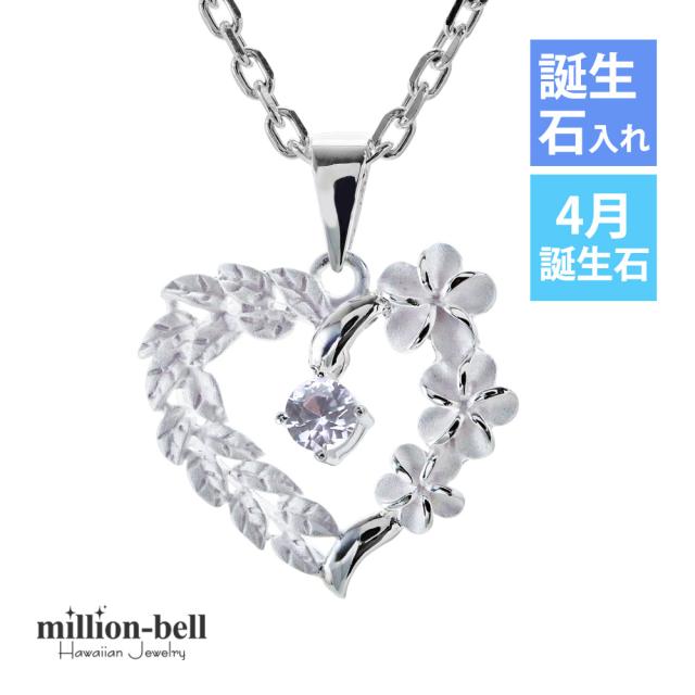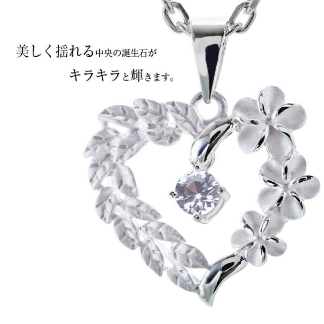 ハワイアンジュエリー ネックレス シルバー ネックレス 4月の誕生石 ラベンダージルコニア オープンハート マイレリーフ プルメリア シンプル シルバー925 ギフトラッピング可能セット チェーン 長さ選べる プレゼント 入学式 就職 お祝い 新生活 【品番:CG-SP53801-4G】