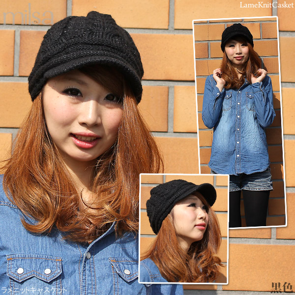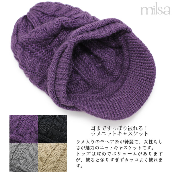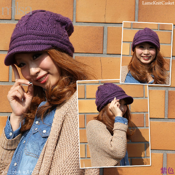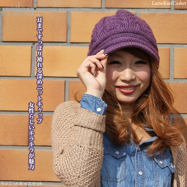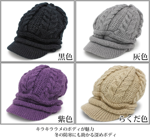 ニット帽 つば付き [メール便可] レディース 帽子 秋冬 ニットキャップ 小顔 / ラメニットキャスケット