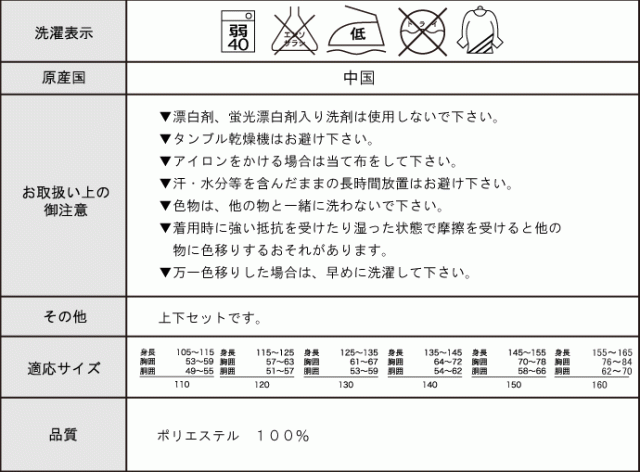 ★生地感:若干の透け感がございます★素材:ポリエステル100%★実寸(cm)110上:着丈45/身幅78/裄丈56/裾幅39下:ウエスト49〜55/ヒップ78/ワタリ22/股上23/股下44120上:着丈50/身幅82/裄丈58/裾幅41下:ウエスト51〜57/ヒップ80/ワタリ23/股上25/股下46130上:着丈54/身幅89/裄丈63/裾幅44下:ウエスト53〜59/ヒップ86/ワタリ24/股上27/股下50140上:着丈57/身幅96/裄丈70/裾幅46下:ウエスト54〜62/ヒップ90/ワタリ25/股上28/股下56cm150上:着丈61/身幅102/裄丈74/裾幅48下:ウエスト58〜66/ヒップ98/ワタリ26/股上29/股下63160上:着丈63.5/身幅108/裄丈81/裾幅51.5下:ウエスト62〜70/ヒップ100/ワタリ28/股上30/股下68