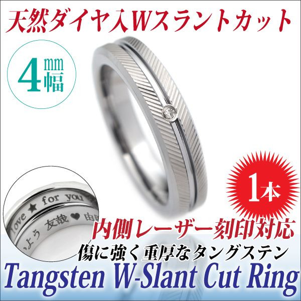 送料無料 刻印無料 ダイヤモンド タングステン ダブルスラントカット カット リング 指輪 単品