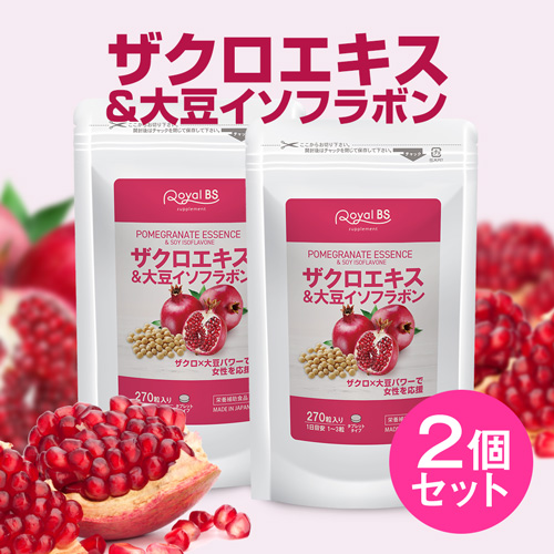 ザクロエキス&大豆イソフラボン まとめ買い 2個セット送料無料 業務用 大容量 Royal BS サプリ サプリメント 女子力 柘榴 ザクロ 約3ヶ月分 ざくろエキス 女性 肌 美容サプリメント 30代 40代 50代 エラグ酸 ウロリチン
