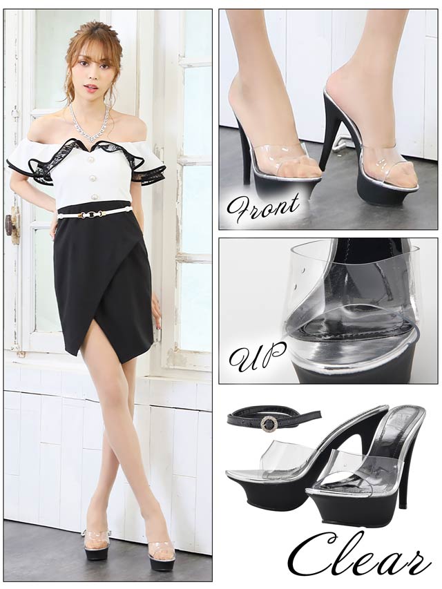 サンダル クリア 靴 クツ シューズ ストラップ付 オリジナル ヒール 13センチ 13 高さ たかさ サイズ さいず S M L LL 22 22.5 23 23.5 24 24.5 25 厚底 美脚 DS-5 キャバ嬢 仕事用 パーティー ブラック 黒 エナメル レース グリッター ラメ マットソール お店 華沢友里奈 ハナザワユリナ mn39001