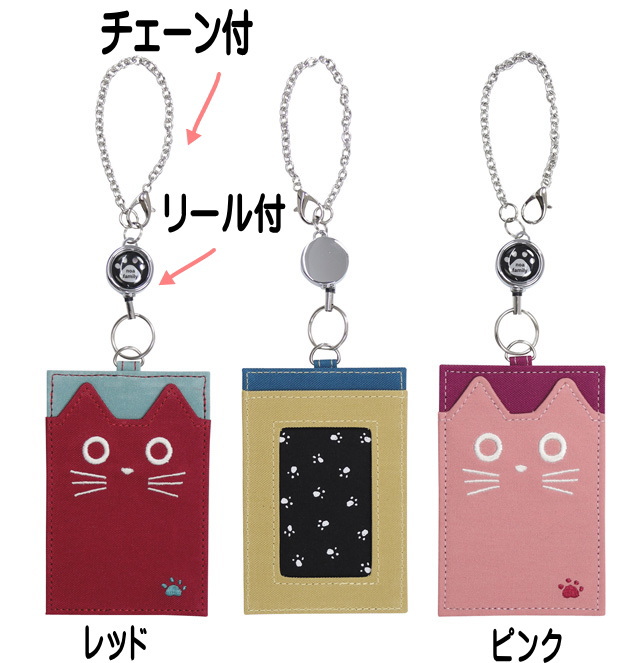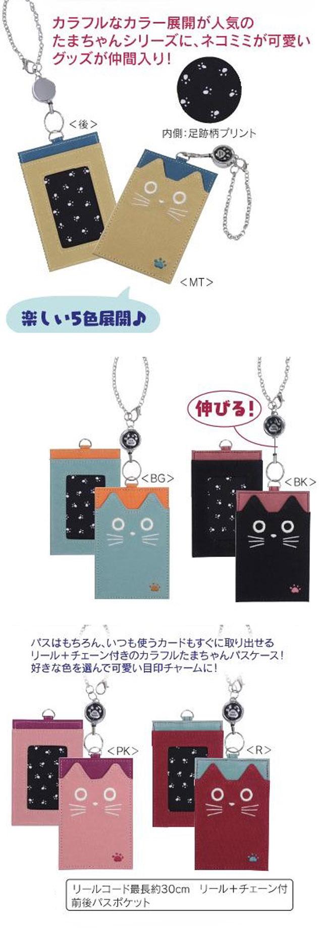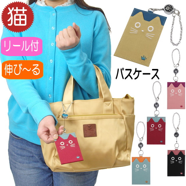 パスケース リール付き カードケース 定期入れ ネコ柄 フェイスたま ノアファミリー チェーン付き 便利 売れ筋 かわいい おしゃれ 人気 レディース ギフト プレゼント【 誕生日 】